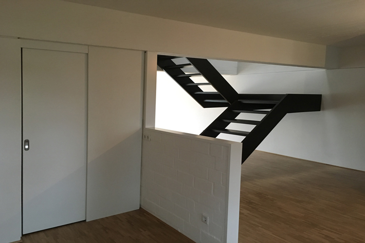 Renovierung einer Etagenwohnung in einem Architektenhaus. Komplette Sanierung der Wohnreume mit Erhaltung der kubischen Formen und der wiederkehrenden Stilelementen der 70-er Jahre in Verbindung mit modernen Materialien.