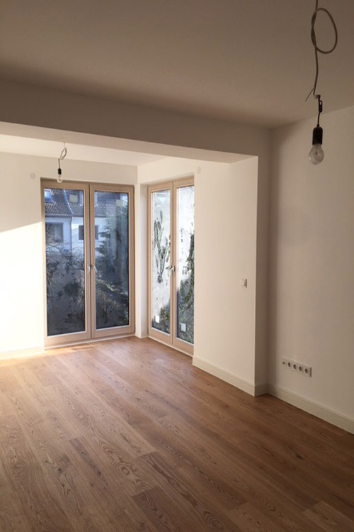Komplettsanierung der Innenraeume. Das Ziel des Sanierungskonzeptes lag darin, die normal wirkende Immobilie durch ein Stadtvillenflair zu reaktivieren. Dabei sollte die Raumaufteilung neu durchdacht und dem modernen Wohnkomfort angepasst werden.